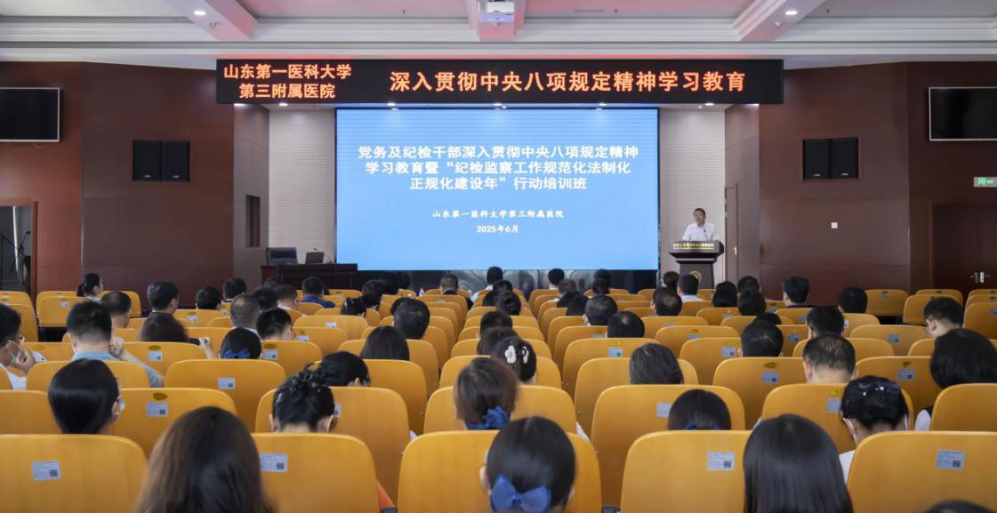 为深入贯彻中央八项规定精神学习教育,扎实推进“纪检监察工作规范化法制化正规化建设年”行动,6月10日,山东第一医科大学第三附属医院组织开展党务及纪检干部深入贯彻中央八项规定精神学习教育暨“纪检监察工作规范化法制化正规化建设年”行动培训。省纪委监委驻校(院)纪检监察组副组长、校(院)纪委副书记任伟同志莅临指导并亲自授课,医院党委书记仲浩同志主持会议并作动员报告。