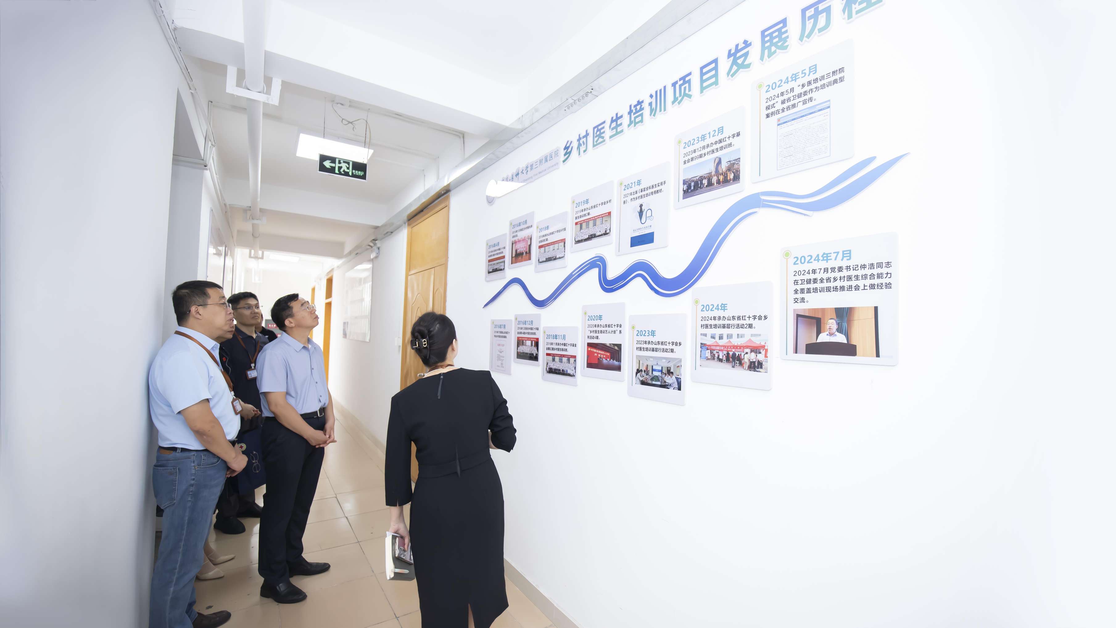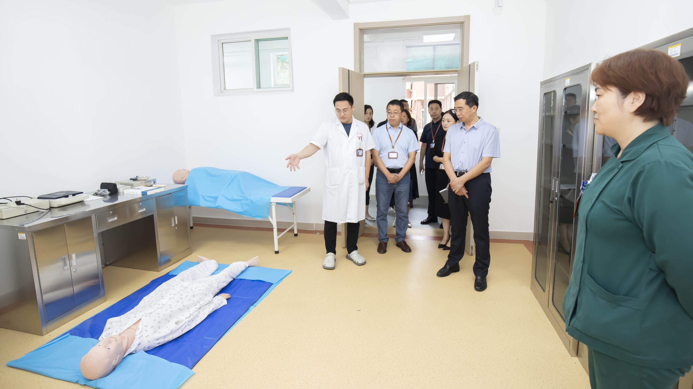 调研组先后来到医院乡村医生技能培训室、安宁疗护中心、乡村医生培训多媒体教室等现场调研指导。