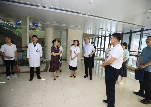 7月10日上午,山东省卫生健康委医养健康处一级调研员于凤华,山东省医保局价格招采处二级调研员姜晓彤、李昌原,济南市卫生健康委医养健康处处长左占峰,济南市医疗保障局医药价格和招标采购处副处长潘柳欣,济南市卫生健康委医养健康处二级调研员王芝美,日照市卫生健康发展服务中心主任王钦余等一行17位领导专家莅临山东第一医科大学第三附属医院考察调研安宁疗护工作。天桥区卫生健康局副局长、二级调研员怀宝双,山东第一医科大学第三附属医院党委副书记吕宝玉,山东第一医科大学第三附属医院党委委员、副院长龙飞,肿瘤内科首席专家盛立军及相关职能科室主任,安宁疗护中心负责人、护士长等参加。