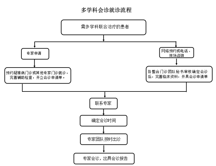服务项目:门诊预约诊疗、疑难病多学科联合会诊、知名专家门诊。