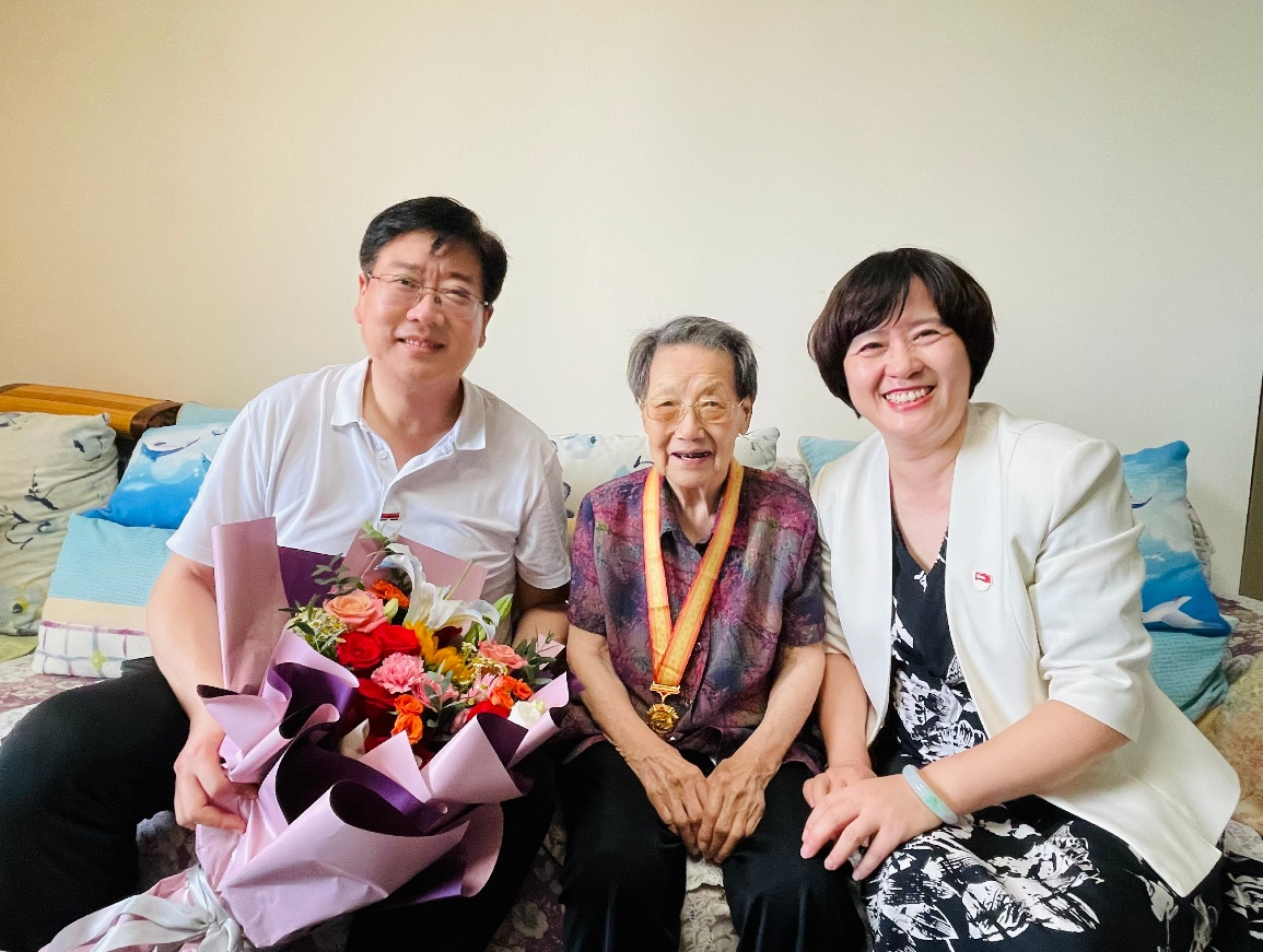 纪希照老人今年93岁,先后参加过抗日战争和解放战争,见证了中华民族那段风雨如晦、浴血奋战的艰难岁月。在老人家中,山东第一医科大学(山东省医学科学院)副校(院)长、山东第一医科大学第三附属医院(山东省医学科学院附属医院)院长辛涛为她佩戴上“中国人民抗日战争胜利80周年”纪念章,并献上鲜花,感谢她为中国革命和民族解放做出的伟大贡献。辛涛详细询问了老人身体状况、生活情况,祝福老人健康长寿、生活幸福。