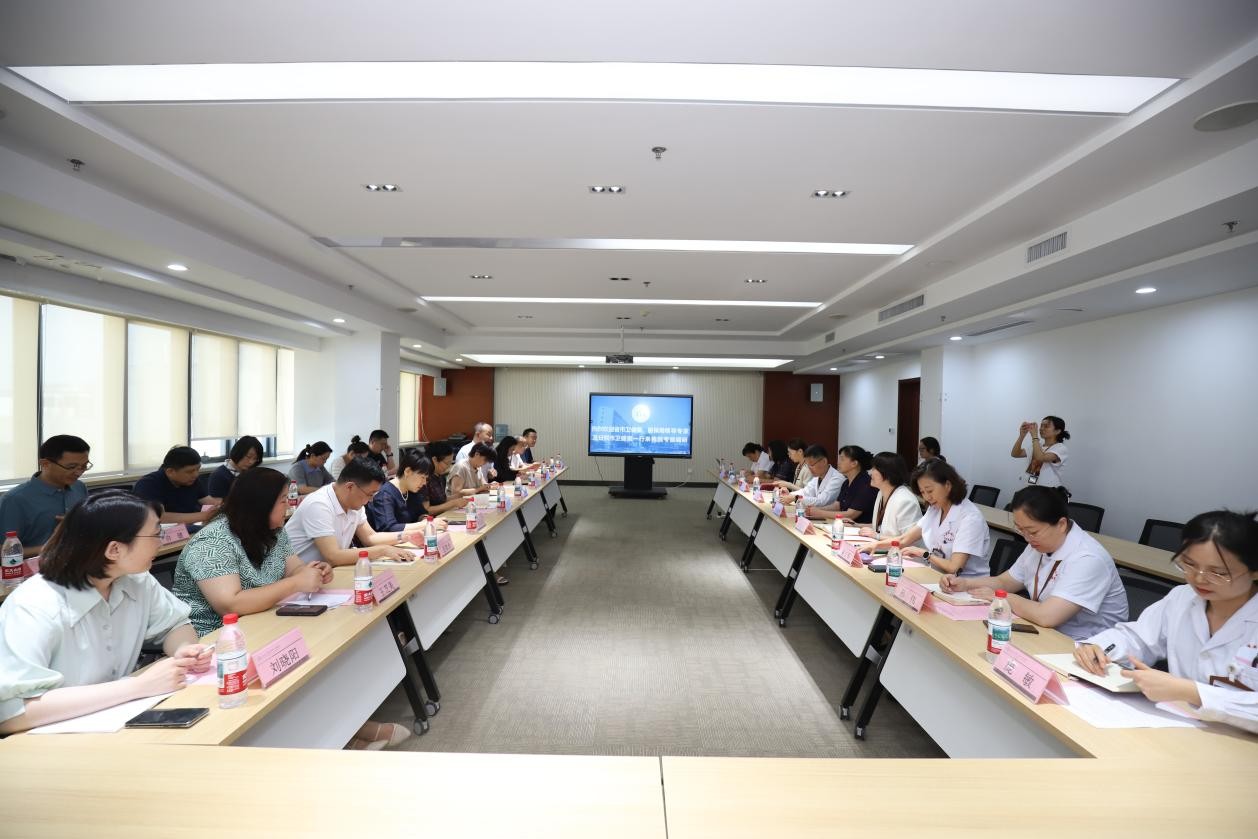 7月10日上午,山东省卫生健康委医养健康处一级调研员于凤华,山东省医保局价格招采处二级调研员姜晓彤、李昌原,济南市卫生健康委医养健康处处长左占峰,济南市医疗保障局医药价格和招标采购处副处长潘柳欣,济南市卫生健康委医养健康处二级调研员王芝美,日照市卫生健康发展服务中心主任王钦余等一行17位领导专家莅临山东第一医科大学第三附属医院考察调研安宁疗护工作。天桥区卫生健康局副局长、二级调研员怀宝双,山东第一医科大学第三附属医院党委副书记吕宝玉,山东第一医科大学第三附属医院党委委员、副院长龙飞,肿瘤内科首席专家盛立军及相关职能科室主任,安宁疗护中心负责人、护士长等参加。