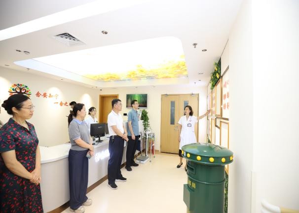 调研组一行走进医院安宁疗护中心,先后实地察看了医院安宁疗护中心病房、多功能家庭会议室、阳光走廊、安心茶话屋、文化墙、关怀室、许愿树、品味轩等区域,通过与医护人员深入交流、现场观摩服务流程等方式,深入了解安宁疗护中心的运营模式、服务内容和管理经验。